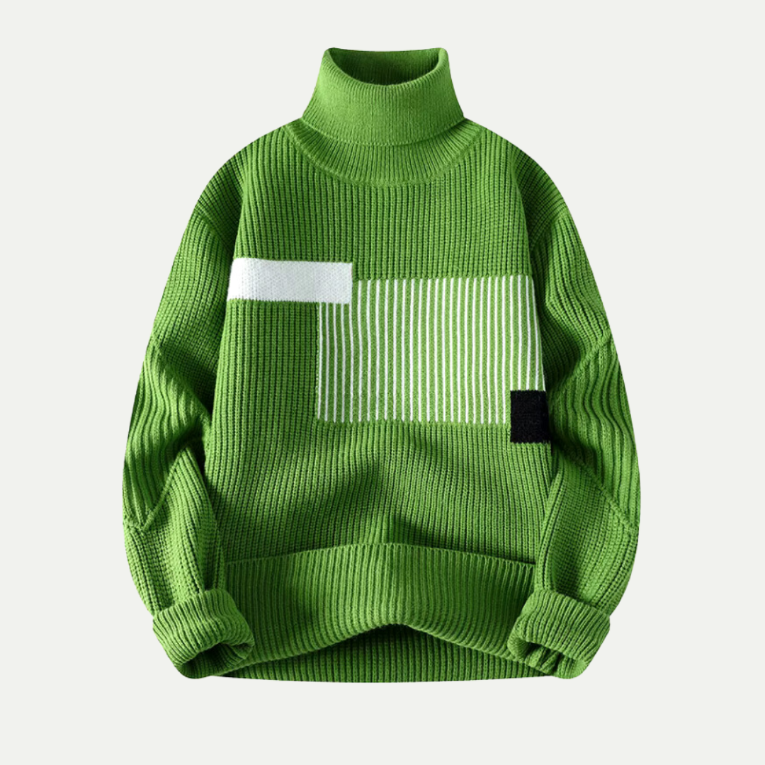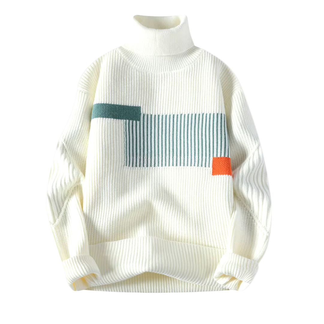 Men’s Turtleneck Sweater with Long-Sleeves and Geometric Pattern