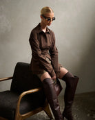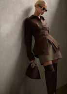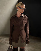 Women’s Long Sleeve Blouse with Overlapping Waist Panels and Front Slit