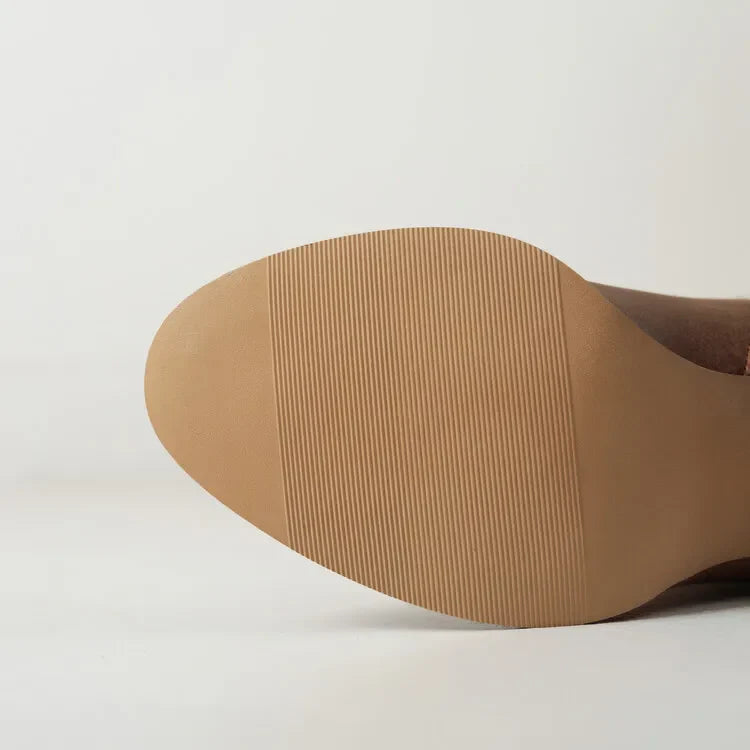 Women’s Knee-High Boots with Stitched Designs and Side Zipper