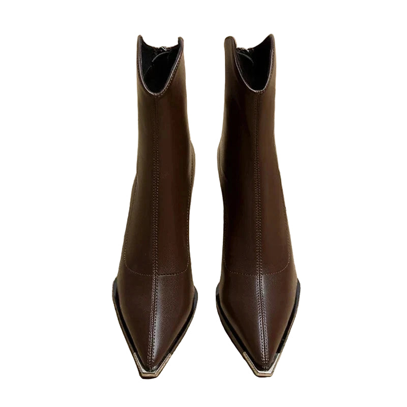 Women’s High Heel Boots with Pointed Toe and Metallic Tip