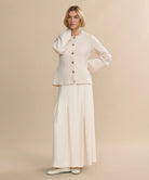 - Front: Button placket with round buttons.