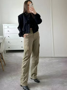 Women’s Long Sleeve Jacket with Snap-Button Closure and Front Pockets