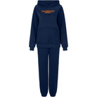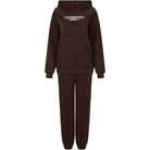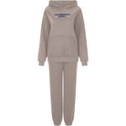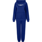 This women’s set includes a hoodie and joggers. The hoodie has long sleeves, an attached hood, and a front kangaroo pocket. The joggers feature a waistband with drawstring and gathered ankle cuffs.