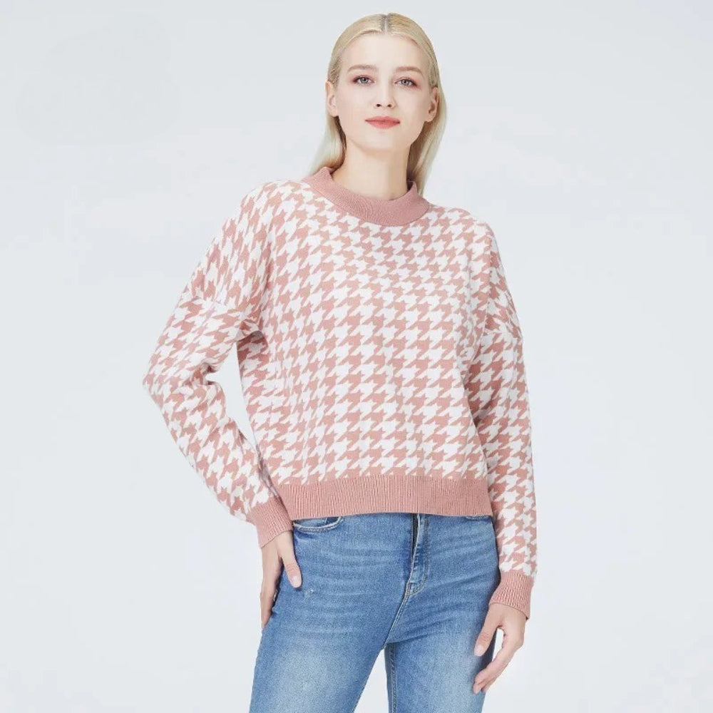 Women’s Sweater with Geometric Pattern and Dropped Shoulders