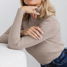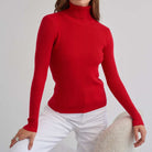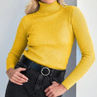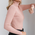 Women’s Long Sleeve Sweater with Turtleneck Collar and Vertical Ribbing
