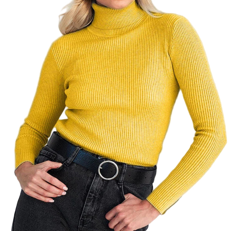 Women’s Long Sleeve Sweater with Turtleneck Collar and Vertical Ribbing
