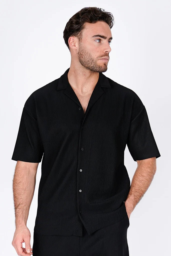 Men's Oversized Plain Color Shirt with Button Closure and Collar